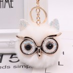 귀여운 패션 여성 수공예 금 먼지 올빼미 모피 코니 헤어 볼 폼폼 매력 자동차 키 체인 핸드백 키 링 펜던트 키 링